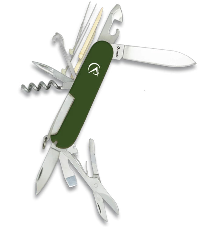 Couteau pliant multifonction professionnel Albainox 11136. Lames et accessoires en inox, manche en ABS.