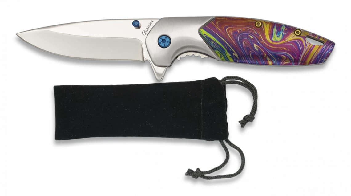 Couteau pliant 3D Albainox Colorful 18390, lame inox longueur 7 cm, manche acier.