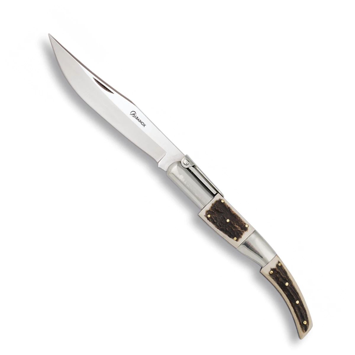 Couteau pliant ARABE CARRACA : lame inox disponible en longueurs 7, 8.5 ou 10 cm, manche en corne de cerf et inox, virole inox.