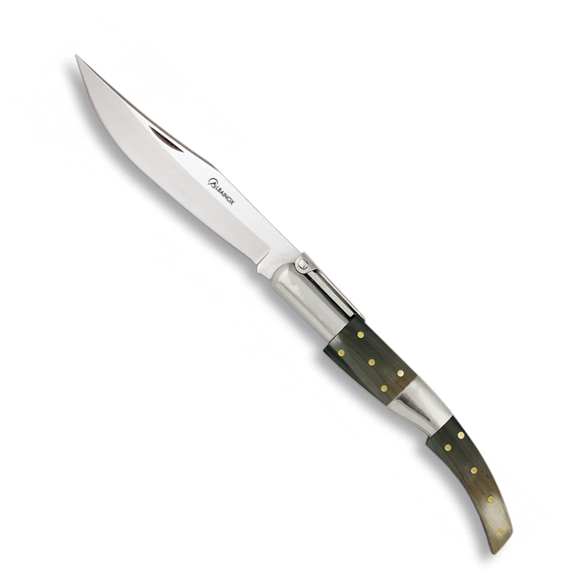 Couteau pliant ARABE CARRACA : lame inox disponible en longueurs 7, 8.5 ou 10 cm, manche en corne de taureau et inox, virole inox.