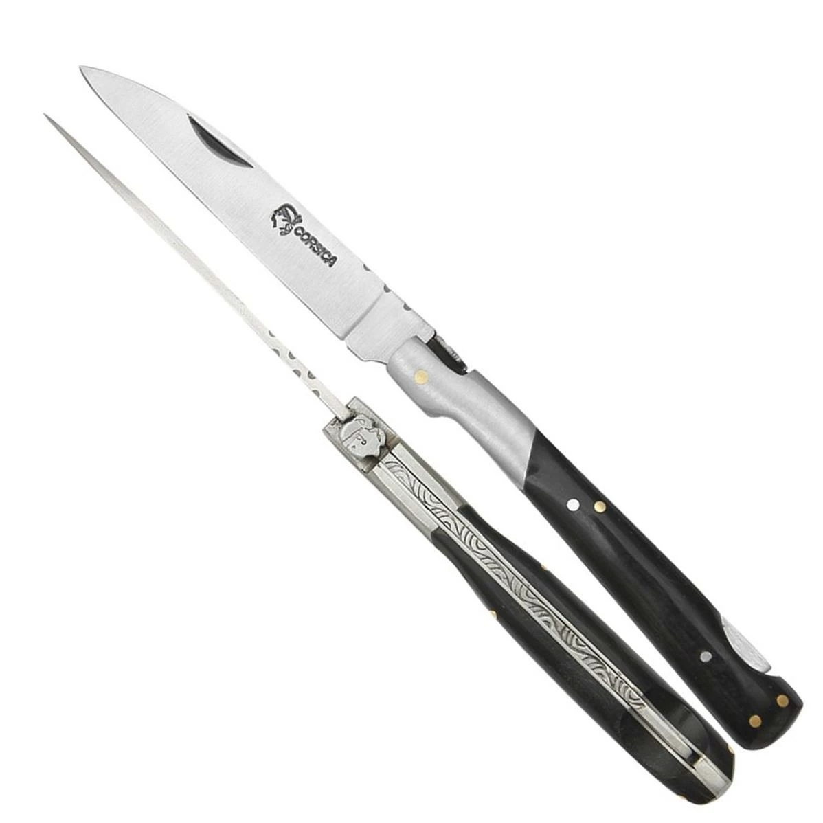 Couteau pliant van Corsica 30132, lame acier inox longueur 10.5 cm et manche avec plaquettes en corne, virole acier inox.