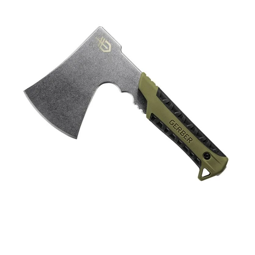 Hache en acier inox longueur 24.1 cm manche en caoutchouc.