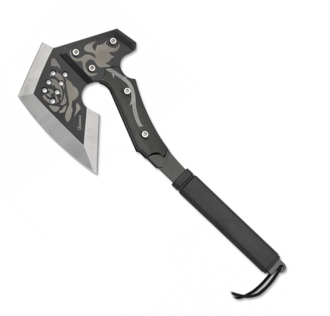 Hache tactique Albainox 32513, lame acier inox et manche en Caoutchouc.