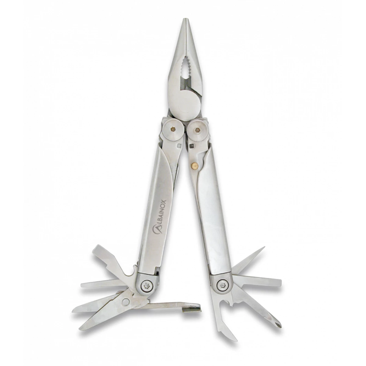Soyez capable de réagir Ă n’importe quelle situation avec cette pince multifonction Martinez Albainox Ă 10 positions. Son design métallique en dit long sur la qualité et la robustesse de ses matériaux, dont un manche en inox et aluminium, léger Ă manier, et des lames en inox qui ne craignent ni choc, ni abrasion, ni corrosion. L’outil de 16 cm est livré avec son étui en nylon.